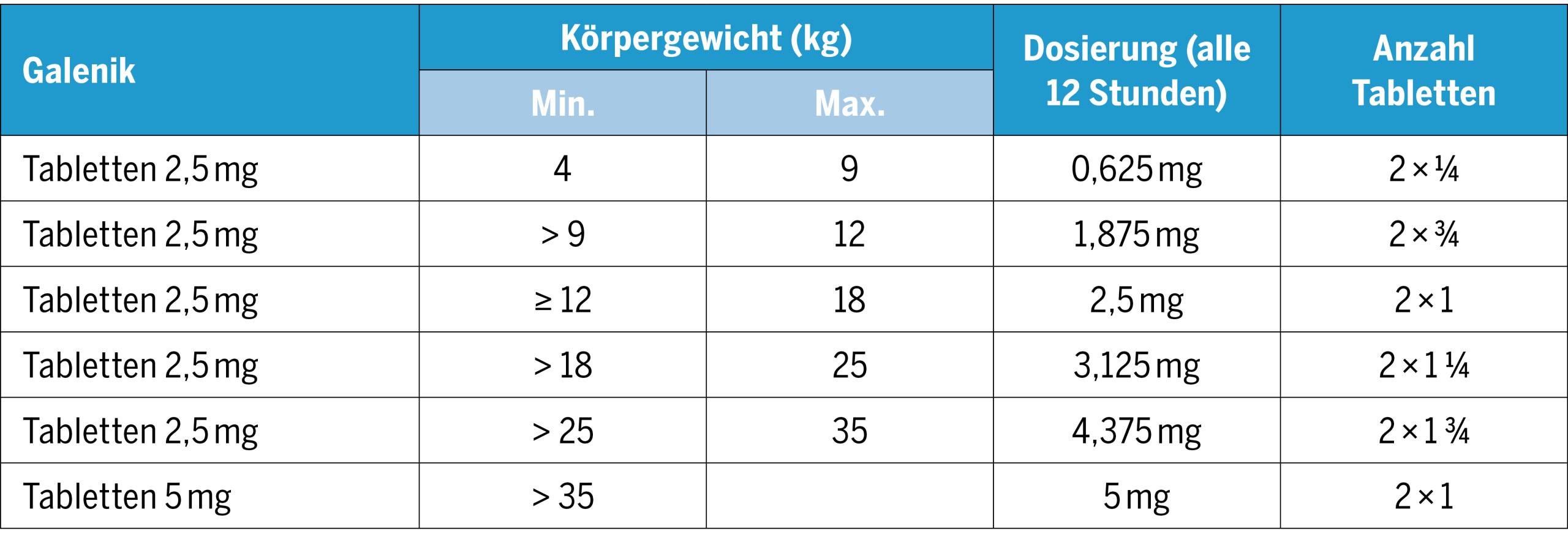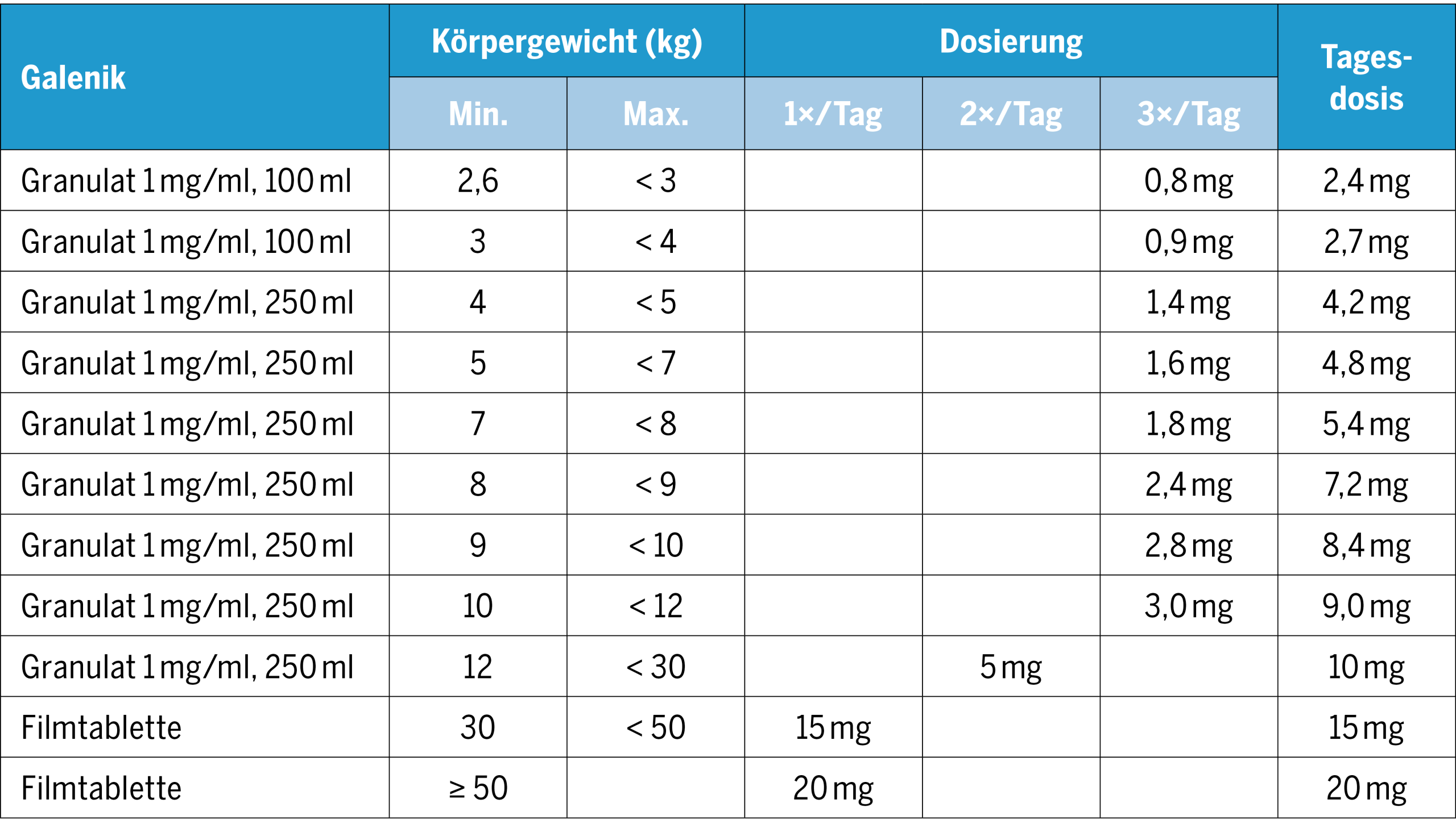 - fixe Dosierung nach Körpergewicht