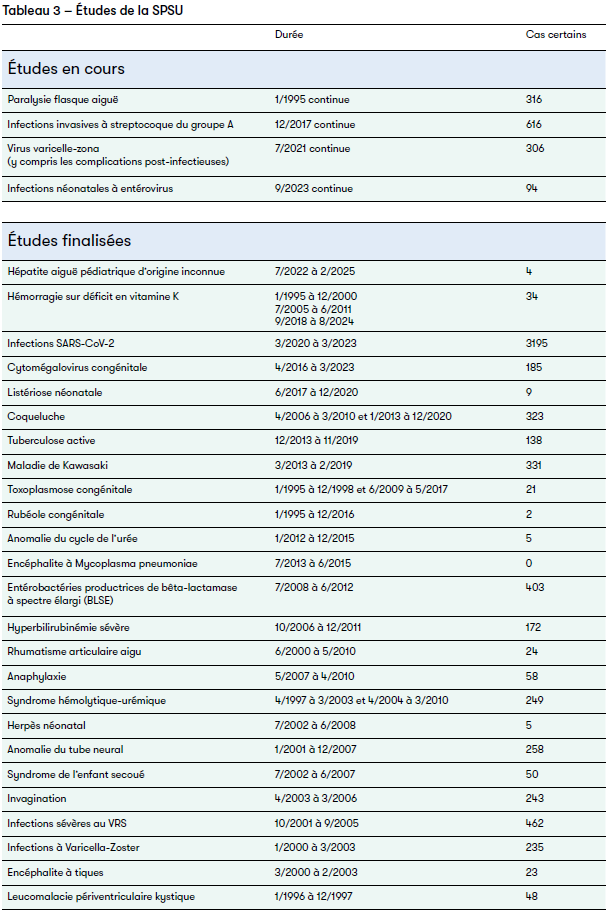 Nous remercions tous les responsables des cliniques pour leur précieuse collaboration, qui est essentielle au bon fonctionnement du système de notification SPSU, ainsi que tous les pédiatres traitants qui soutiennent la collecte des données pour les études.
